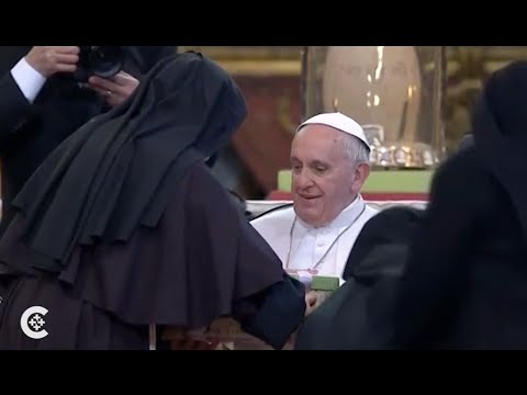 He was welcomed by Cardinal Crescenzio Seppe, the Archbishop of Naples and then surrounded by an enthusiastic group of cloistered nuns who had been given special permission to attend the encounter.